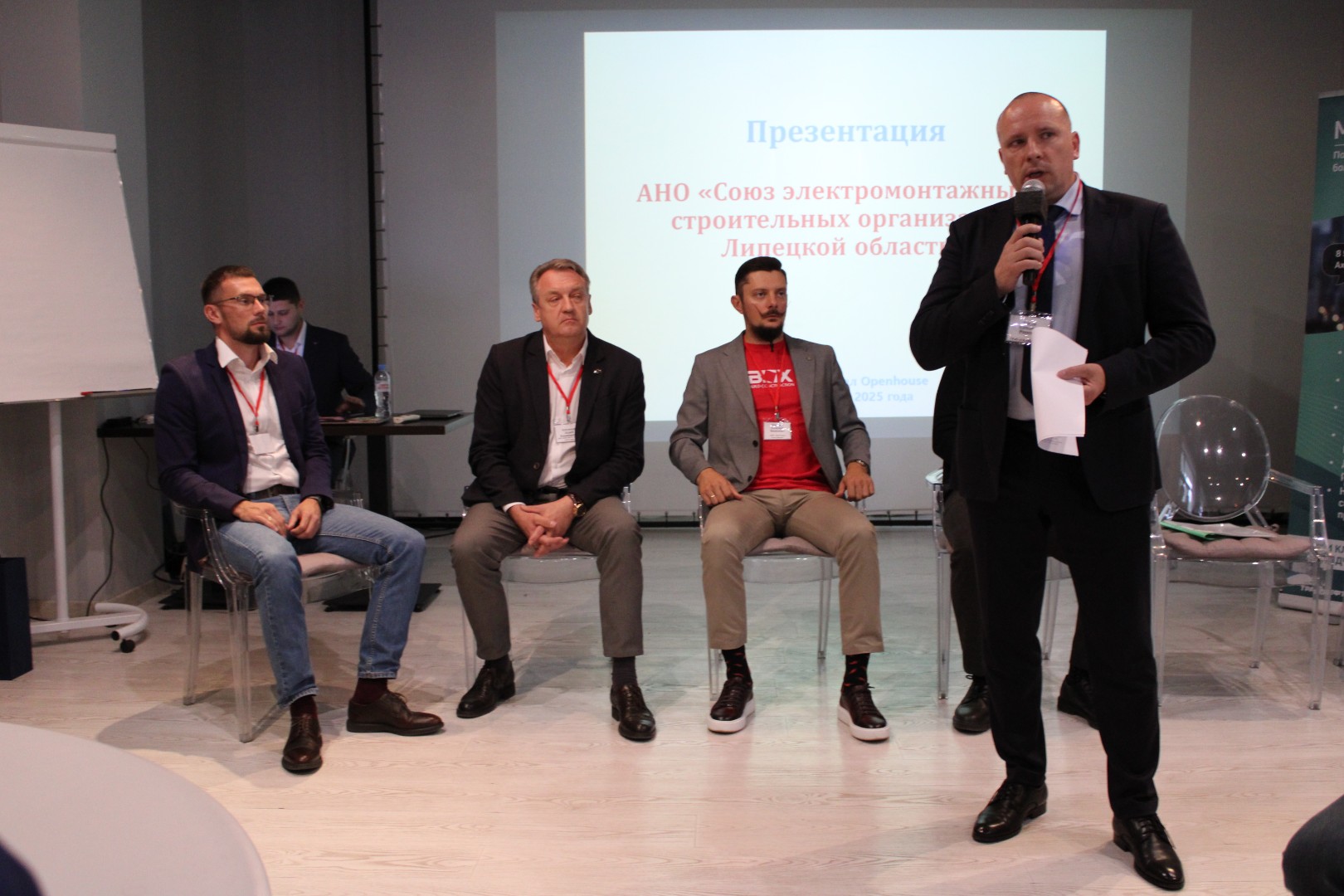 Еще одна тема форума была посвящена созданию АНО «Союз электромонтажных и строительных организаций Липецкой области» по инициативе Председателя Комитета по энергетике и тарифам Липецкой «ОПОРЫ РОССИИ» Василия Алехина. В своем выступлении спикер рассказал про цели и задачи союза электромонтажных и строительных компаний Липецкой области, возможности для участников объединения и развития отрасли в регионе.