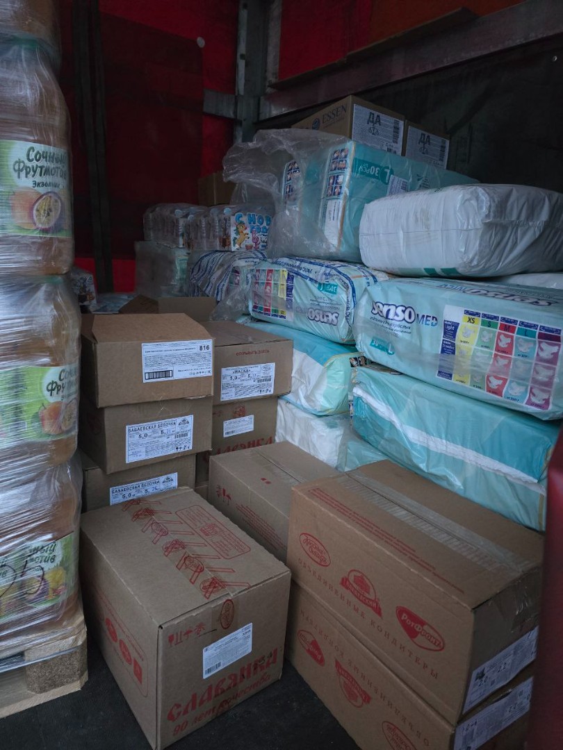 Это по традиции восстановленная и укомплектованная всем необходимым "Нива", а также печки-буржуйки, липецкая минералка, сладкая вода, конфеты в ассортименте, товары для госпиталя.