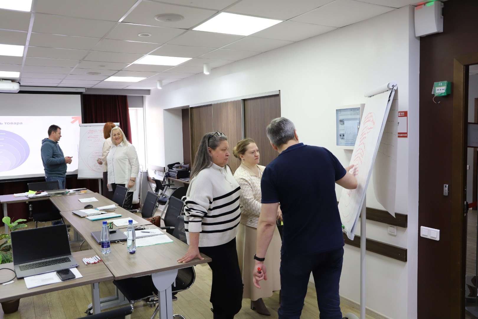 Во второй день узнали о каналах распределения при выходе на внешние рынки, изучили алгоритм разработки вариантов позиционирования компании и основные инструменты продвижения.